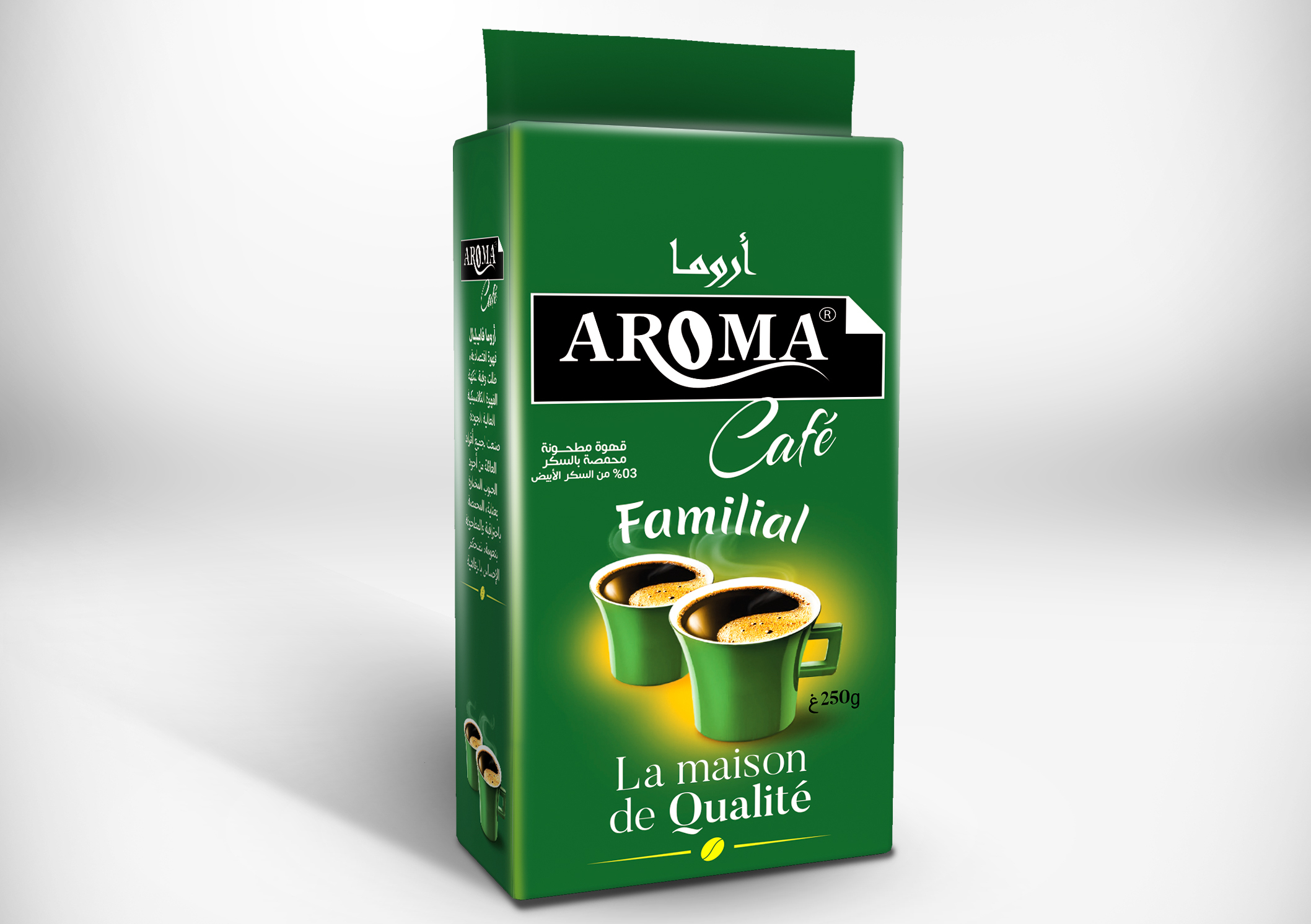 Commencez votre journée avec une nouvelle expérience de café fort. Le café Aroma Familial est sombre et concentré, avec une saveur riche. Ainsi, vous pouvez profiter du meilleur début de matinée - sans avoir besoin d'une cuillerée de café supplémentaire. Nous sélectionnons avec soin les meilleurs grains avant de les torréfier davantage, afin d'obtenir des niveaux plus élevés de concentration et de force pour la saveur et l'arôme. Prenez du temps avec la famille pour savourer un café riche, sombre et intense - parce que les matins sont du temps en famille.