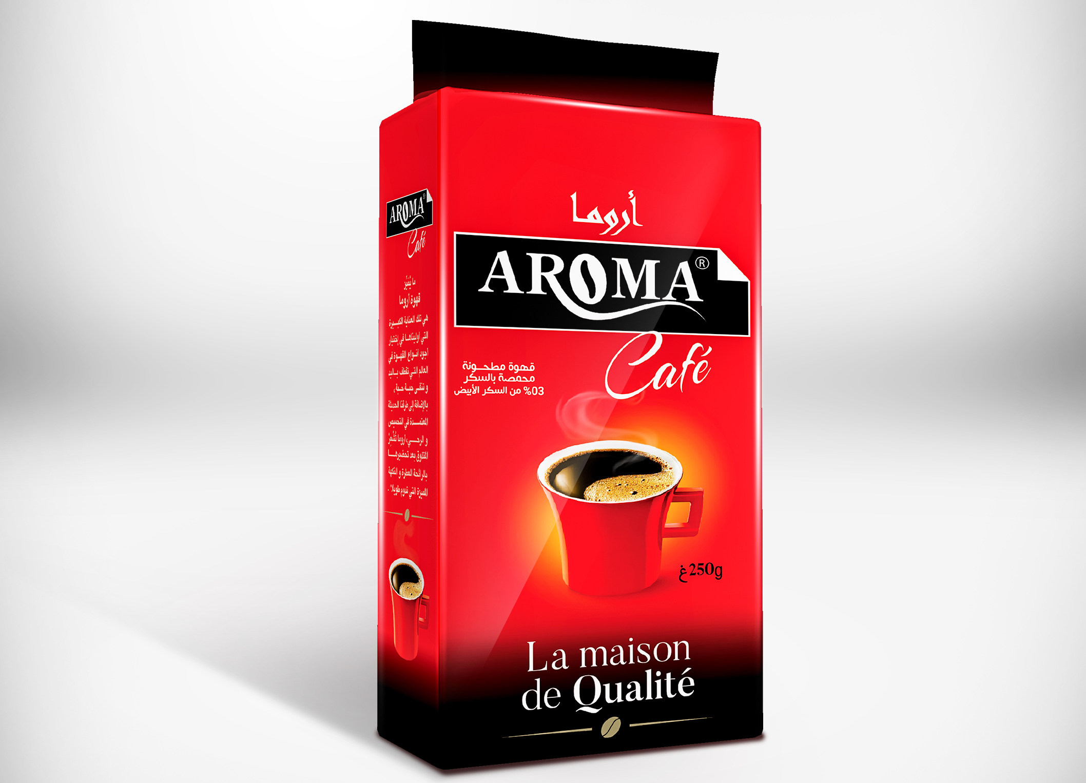 Café parfait torréfié avec soin pour les plus beaux moments de la matinée Commencez votre journée avec le merveilleux goût du café Aroma. Ce café est préparé à partir de grains de café soigneusement sélectionnés qui ont été torréfiés sous la supervision d'experts pour vous donner le goût distinctif et la saveur riche que vous aimez.